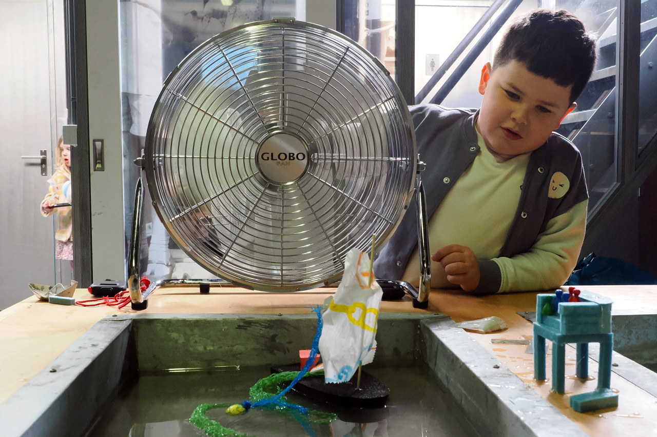 Stap in de wereld van kleine scheepsbouwers! Bouw je eigen schip en test of hij blijft drijven in de waterbaan. Zet de ventilator aan, start de stopwatch en ontdek hoe snel jouw schip over het water glijdt. Wie weet wordt jouw schip de snelste van allemaal!
