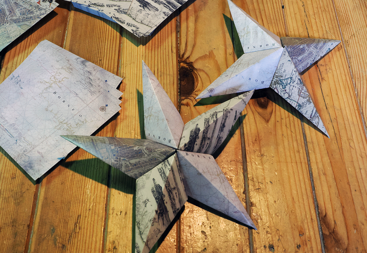 In the past, sailors used to look at the stars and maps to determine their course. Would you like to use those same maps to fold a beautiful star?