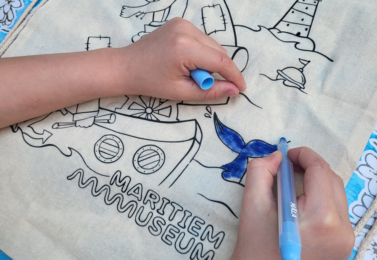 Decorate your own unique Maritime Museum tote bag using textile markers, fabric, and other materials. Design something that truly reflects you and go home with a bag no one else has!
