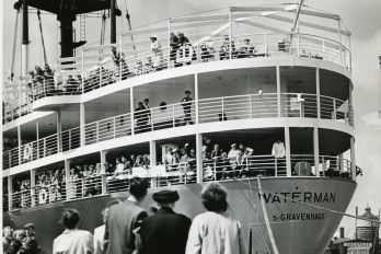 - Foto 10: Vertrek van de ‘Waterman’, met emigranten, 1954 | Fotograaf onbekend